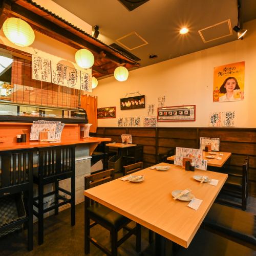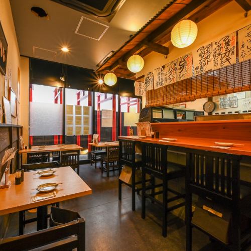 デート利用にぴったりなカウンター席、小規模宴会にも最適なテーブル席ををご用意しております。